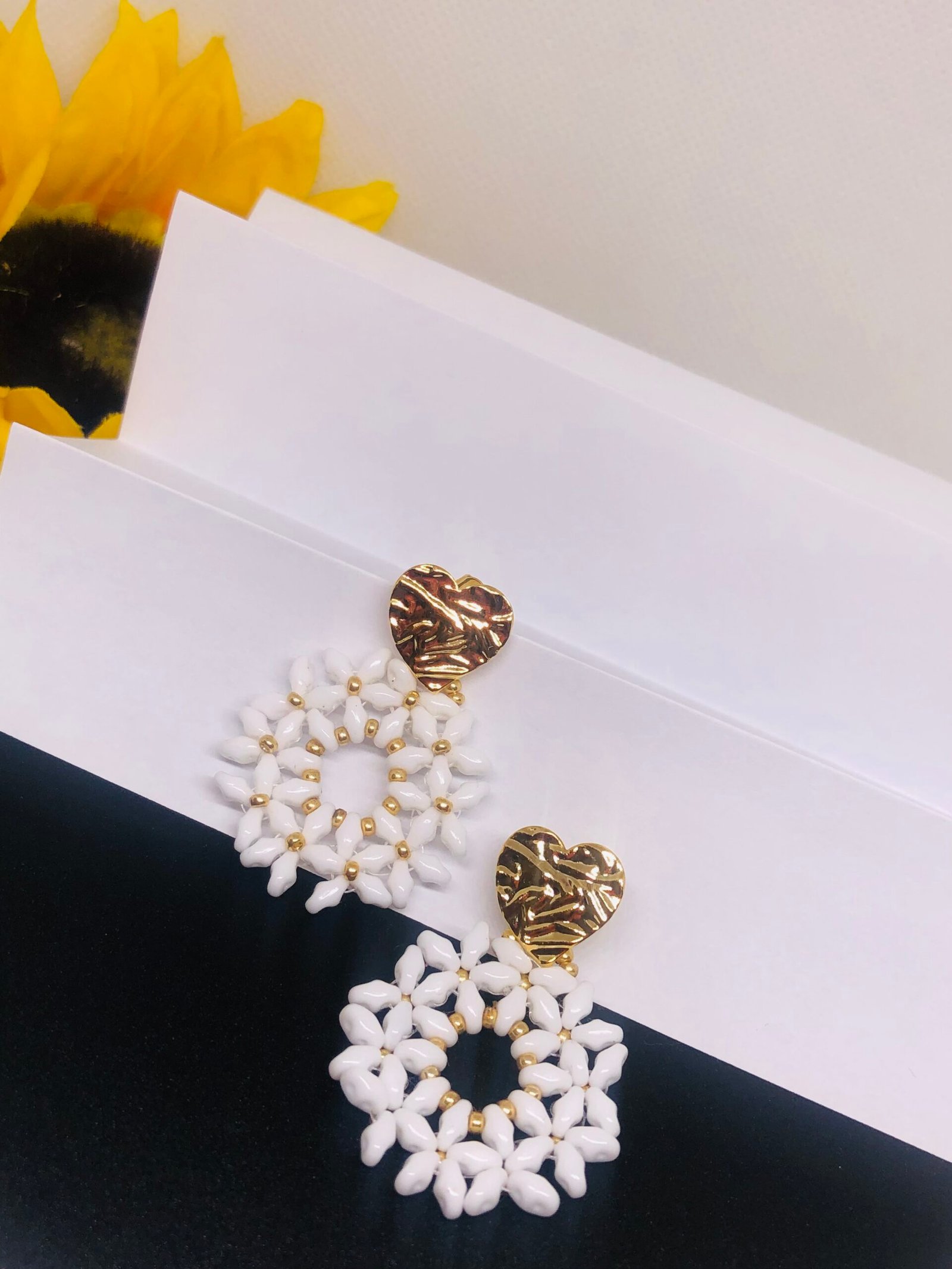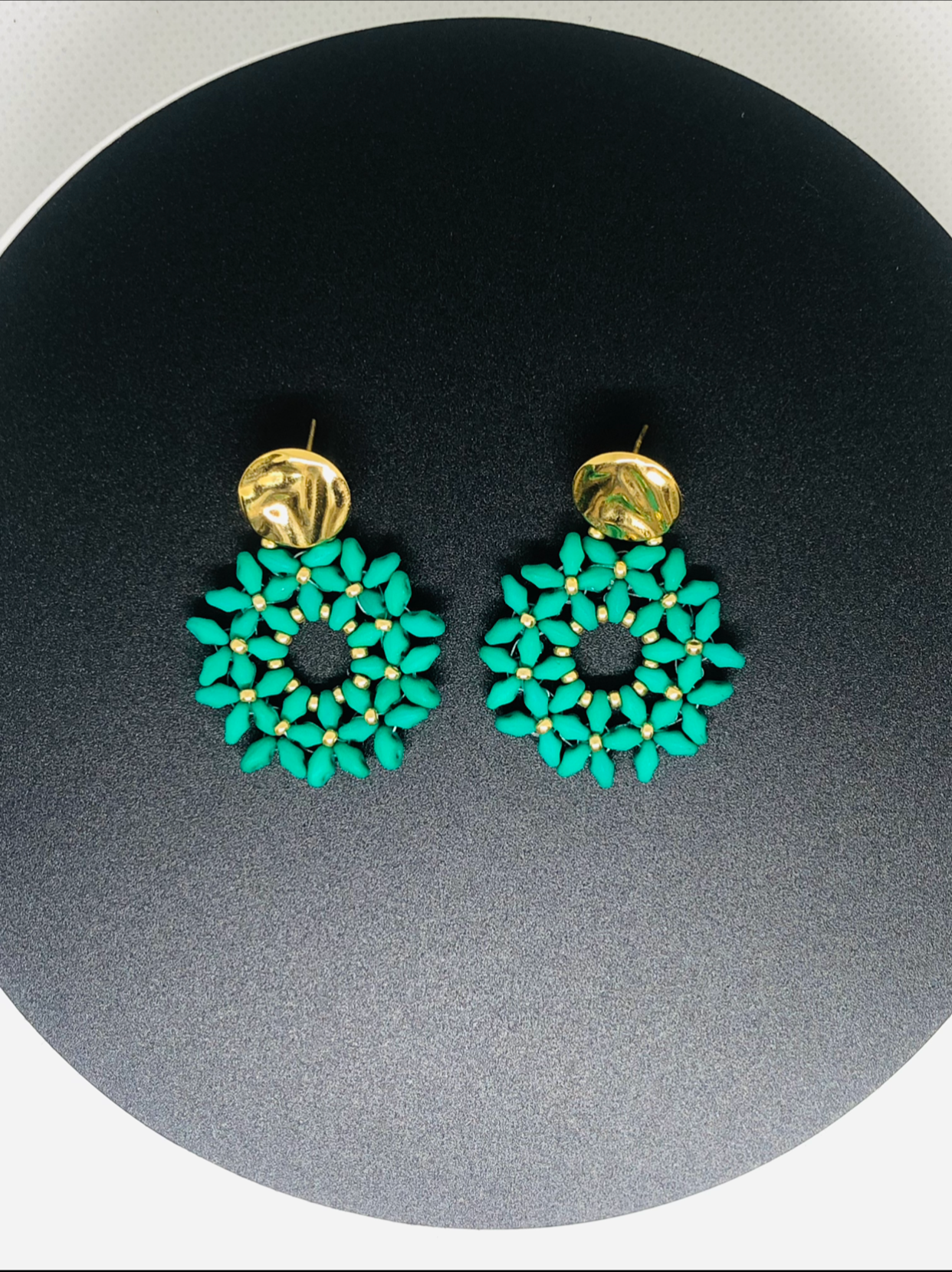Margo earrings reflect the perfect balance between simplicity, modern design, and handcrafted quality. Entirely handmade using beads and super duo, they stand out with their harmonious round shape and matte tones, ideal for a contemporary and elegant style.