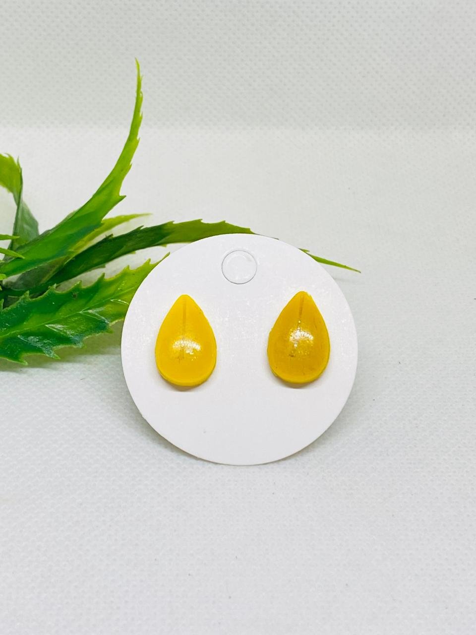 Puce earrings are handcrafted from polymer clay, inspired by nature and delicate details. Their small leaf shape with dotted texture gives them a soft, elegant, and timeless look.